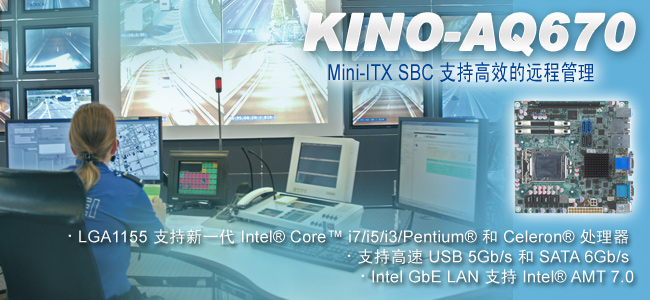 Mini-ITX SBC supports LGA1155 Intel® Core™ i7/i5/i3 CPU, DDR3, VGA/DVI-D, 2COM, Intel GbE, SATA 6Gb/s, USB 3.0, HD Audio and RoHS |